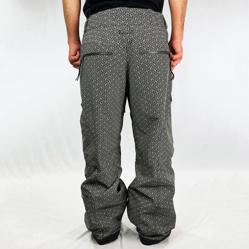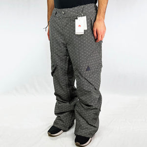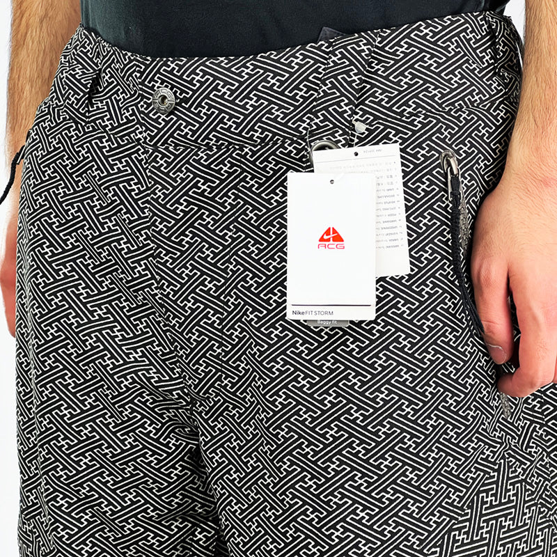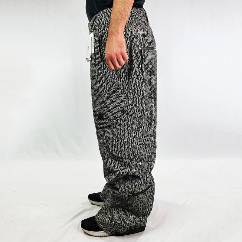 Y2K Deadstock Vintage Nike ACG Kimono Ski Pants in White and Black. Nike ACG branding. Storm Fit technology. Baggy Fit. Kimono style. Zip pockets. Fleeced inner layer and boot gaiters. Belt loops for belt adjustment. Button closure to waist.