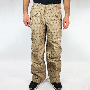 Y2K Women's Deadstock Vintage Nike ACG Cargo Ski Pants in beige with Nike ACG branding. Storm-Fit technology. Thermore light insulation fleeced inner layer. Zip pockets to sides and inner thigh. Boot gaiters. Belt loops for belt adjustment.