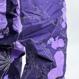Y2K Women's Deadstock Vintage Nike ACG Ski Pants in Purple with Nike ACG branding. Clima-Fit technology. Funky design. Fleeced inner layer. Zip pockets to sides. Boot gaiters. Belt loops for belt adjustment.