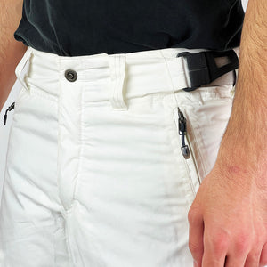 Y2K Women's Deadstock Vintage Nike ACG Cargo Ski Pants in white with Nike ACG branding. Storm Fit 5 technology to keep you comfortable and dry in rain, sleet, and snow. Fleeced inner layer. Zip pockets. Boot gaiters. Belt loops for belt adjustment.
