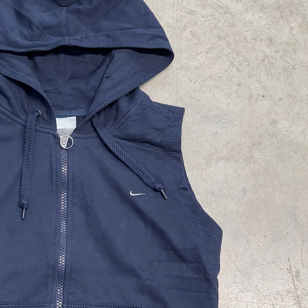 This deadstock vintage Nike Gilet hoodie is a collector's item. The full-zip navy blue hoodie is a rare find that is sure to become a staple in your wardrobe.