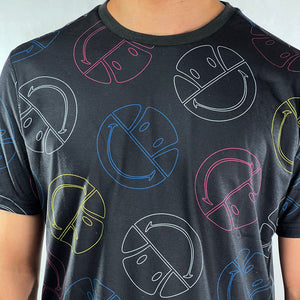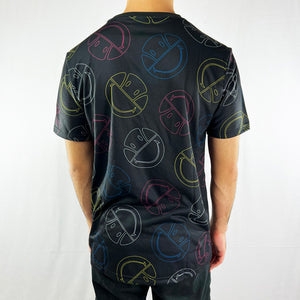 Ellesse x Smiley Merilino t-shirt in black. Smiley face design throughout t-shirt. Crew neck t-shirt.