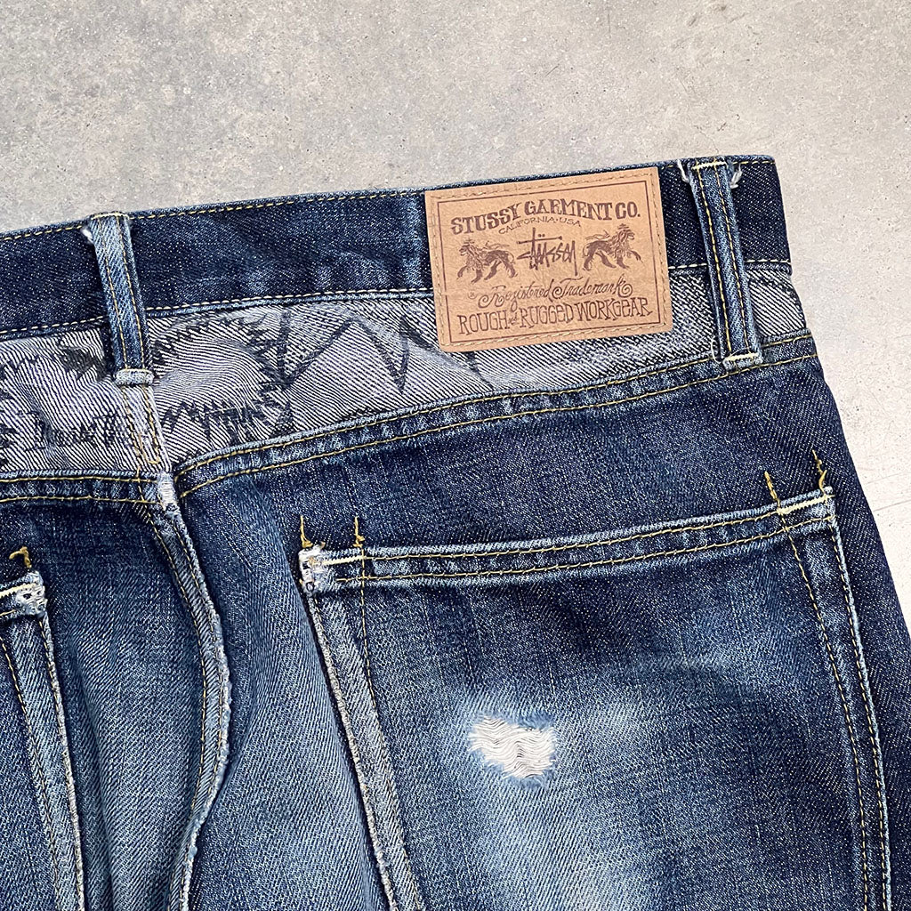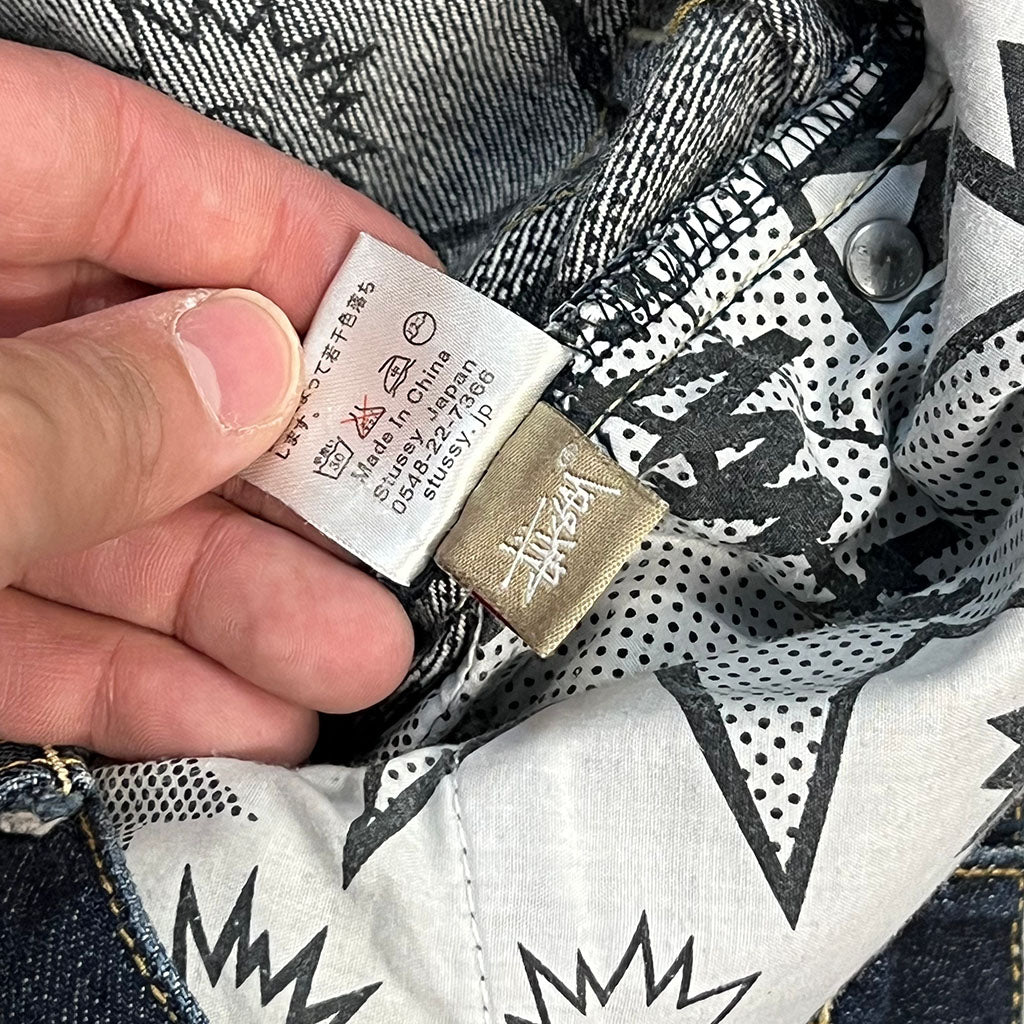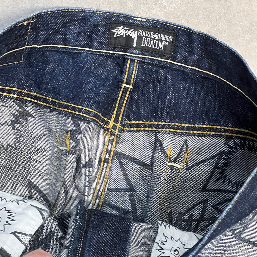 These Vintage Stussy Jeans, featuring the Stussy design. Wear them to make a statement and show off your unique style.